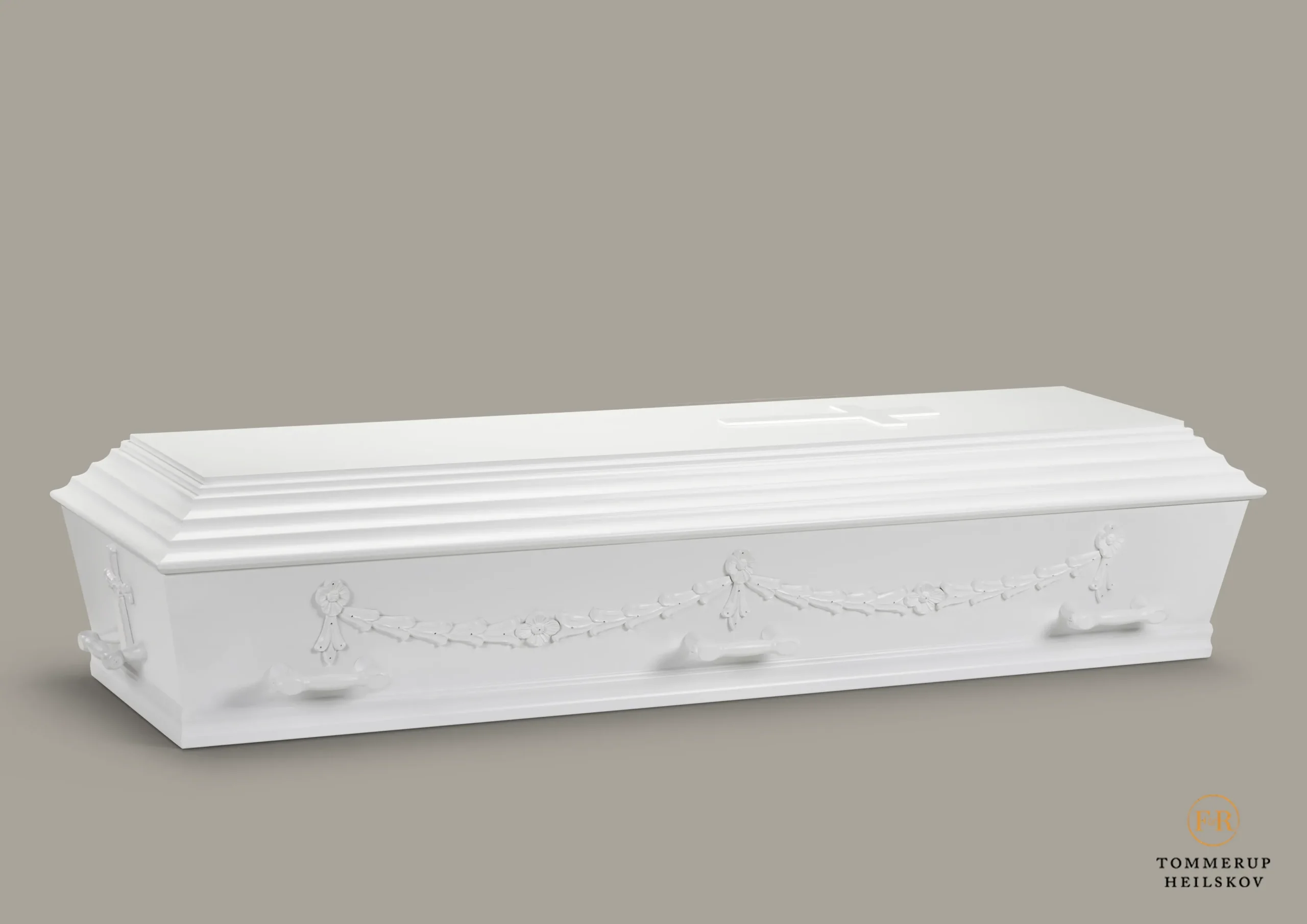 Har I et ønske om, at kisten skal være i en anden farve end hvid, så kan vi også være behjælpelig hermed. De farvede kister kan ses på vores hjemmeside.